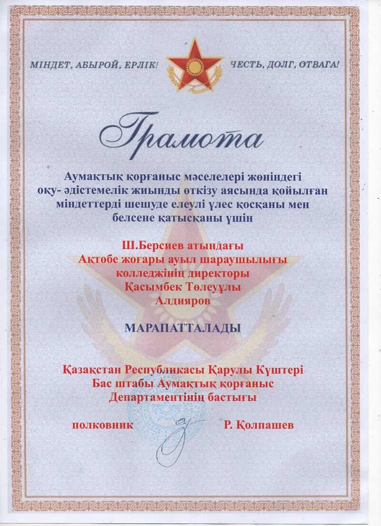 Актюбинский высший аграрно-технический колледж имени Шыганака Берсиева