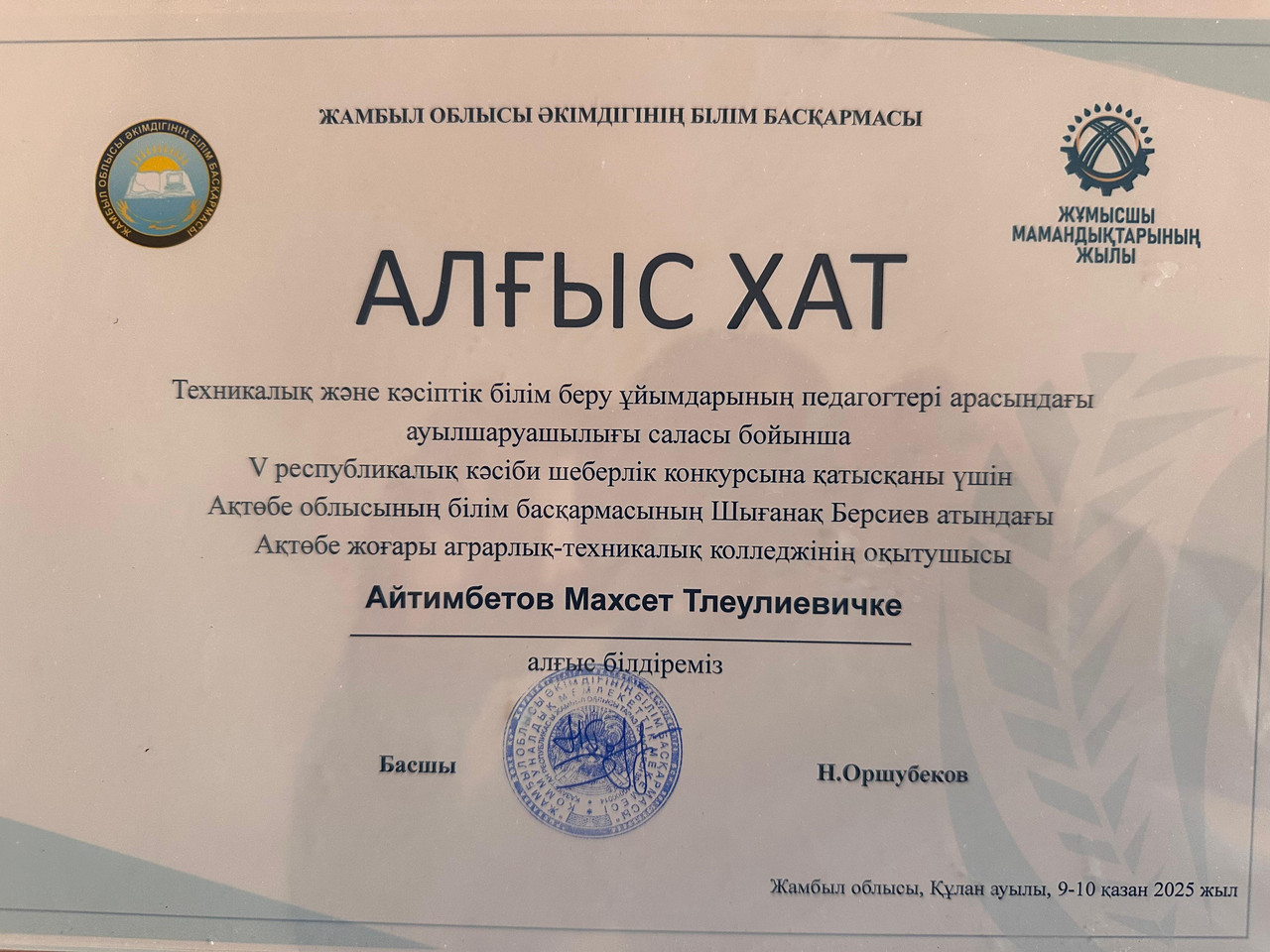 Актюбинский высший аграрно-технический колледж имени Шыганака Берсиева